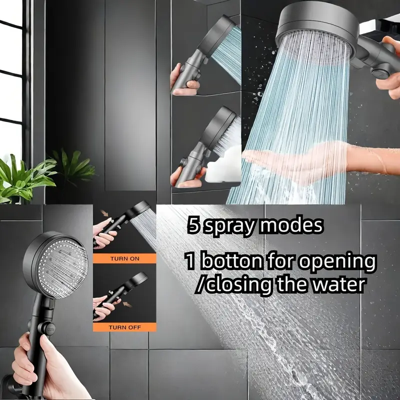 1 قطعة رأس دش متعدد الوظائف بخاصية الضغط العالي، 5 أوضاع، مزود بزر إيقاف الماء بضغطة واحدة، إكسسوارات الحمام، رأس دش مثبت على الجدار، رأس واحد